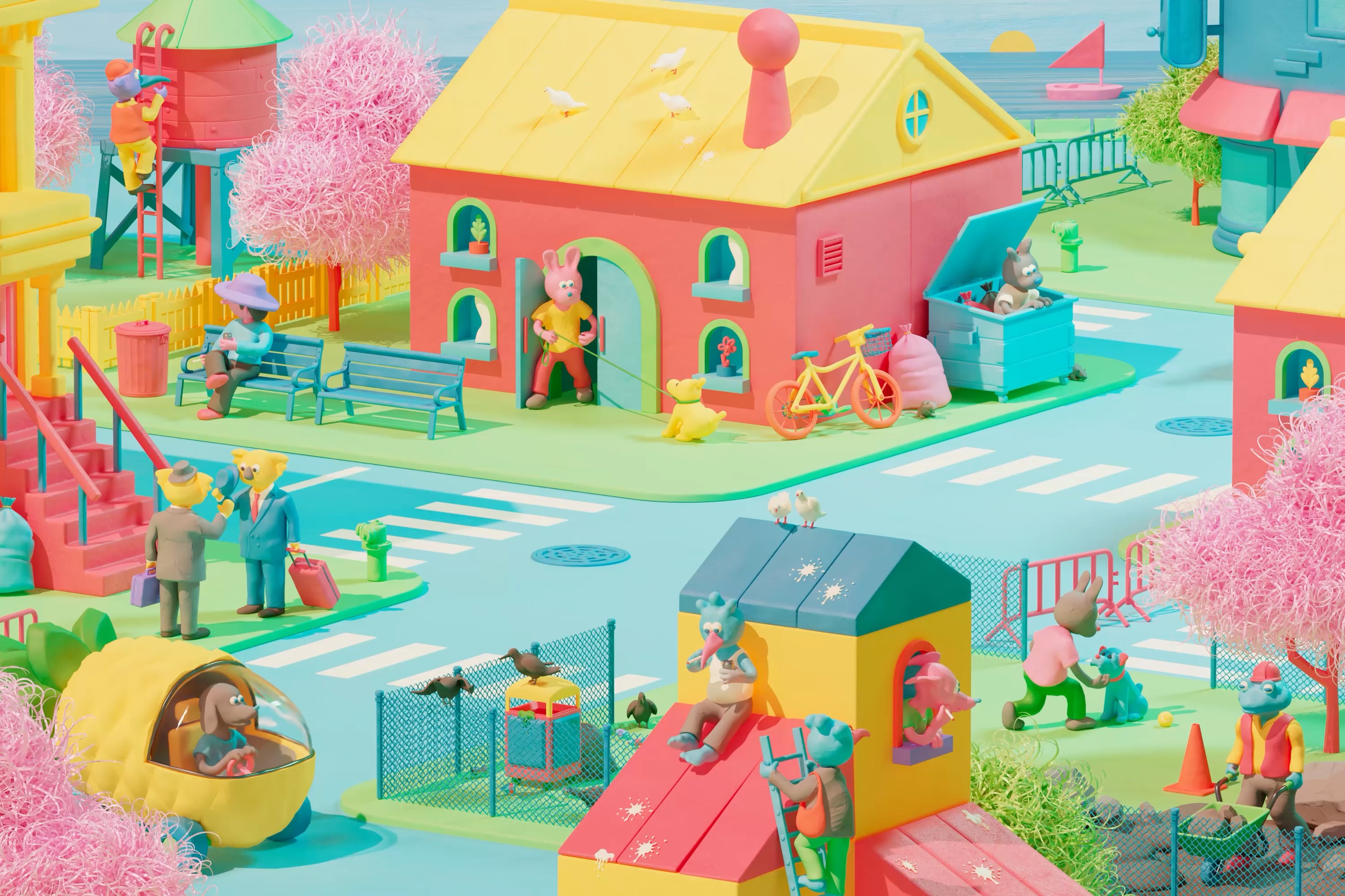 I created a city using elements of kanji strokes,